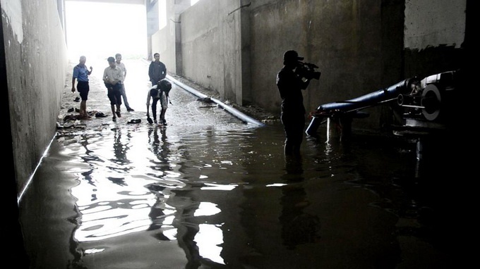 | Nước trong tầng hầm như một bể bơi suốt 4 ngày qua. |