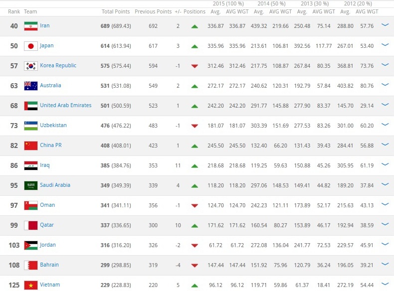 | Thứ hạng cụ thể của ĐTVN tại khu vực châu Á theo bảng xếp hạng tháng 4 của FIFA. |