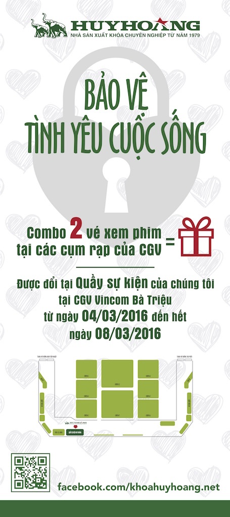Năm nay, những món quà được ưa chuộng nhất lại không quá đắt tiền, mà đòi hỏi sự độc đáo với nhiều ý nghĩa. Khoá tình yêu cũng là một trong những món quà được chào đón, khi thể hiện được tình cảm bền vững của mối quan hệ. Khoá Huy Hoàng đang tặng khóa tình yêu cho các cặp đôi tại CGV. Đây là một trong những điểm hiếm hoi có thể nhận được món quà này. Chiếc khoá như sẻ chia một mùa kỷ niệm đáng nhớ, thể hiện niềm trân trọng tình yêu cuộc sống.