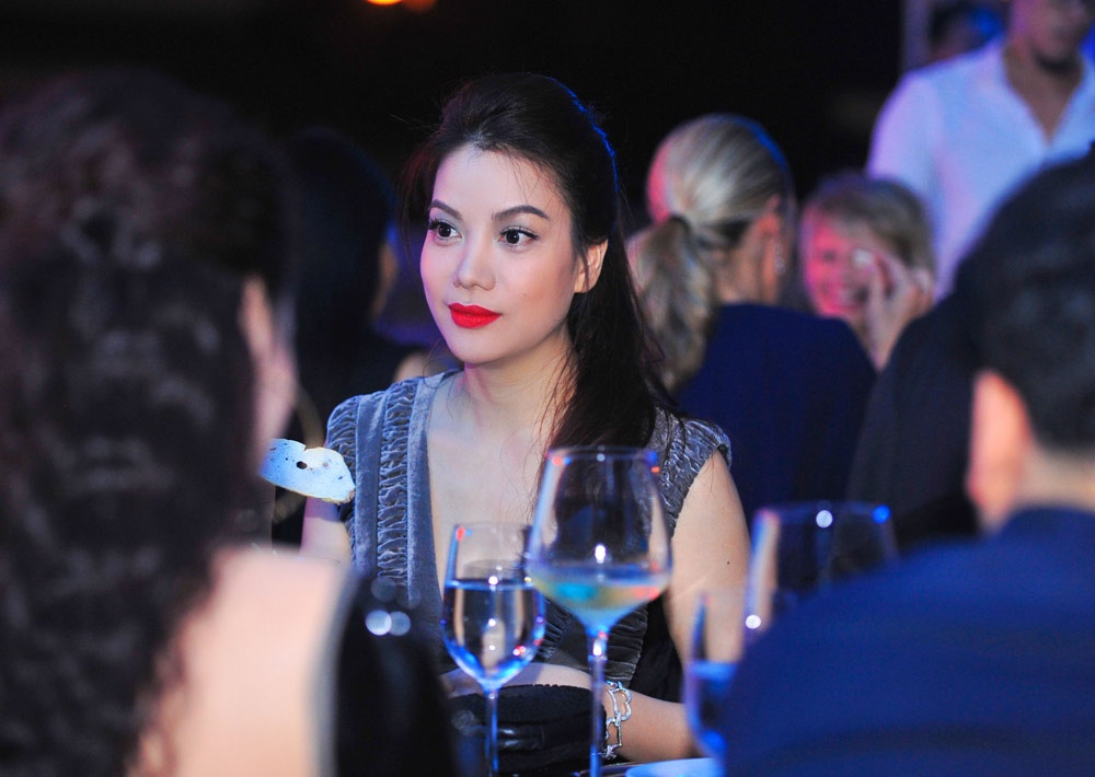 Tăng Thanh Hà diện đồ tự thiết kế đi dự tiệc