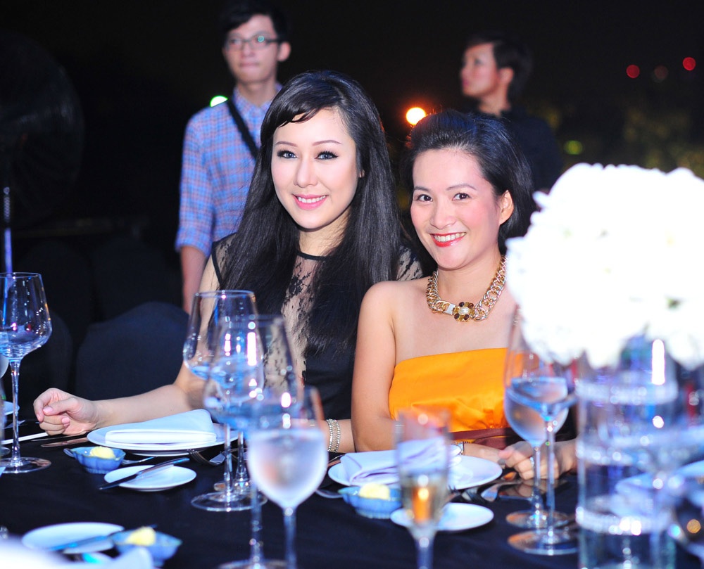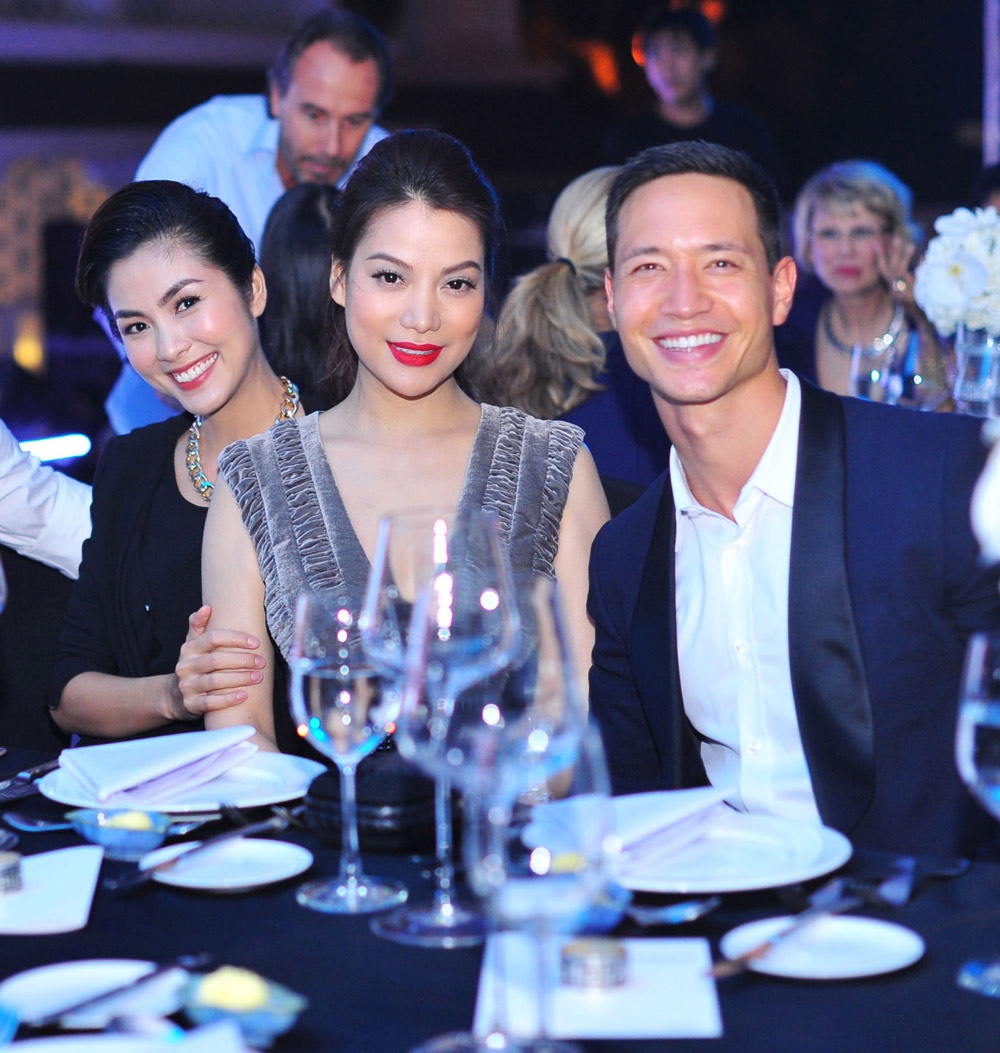 Hà Tăng vui mừng khi hội ngộ đàn chị Trương Ngọc Ánh trong đêm tiệc. Cô nhanh chóng ngồi cùng bàn "cô Dần", cả hai trò chuyện rôm rả suốt sự kiện.