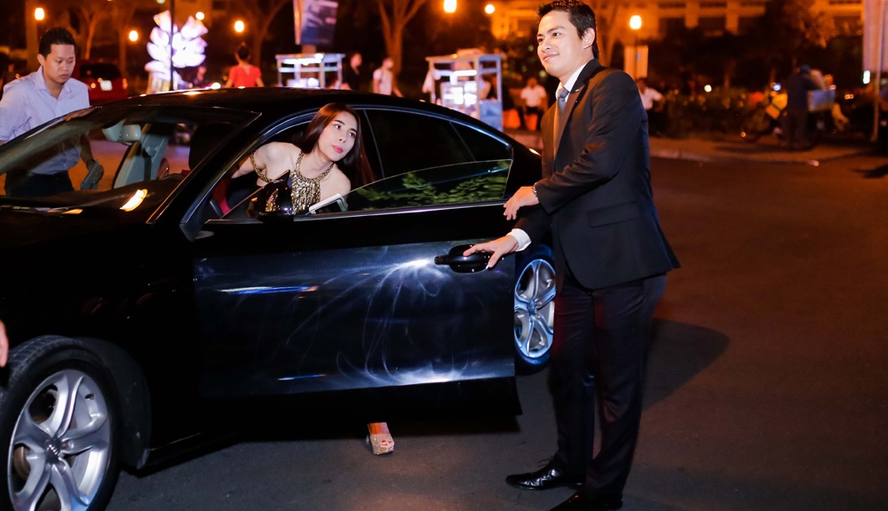 | Thủy Tiên là khách mời đặc biệt của chương trình. Nữ ca sĩ tự lái xe đi dự tiệc mà không có chồng theo cùng. |