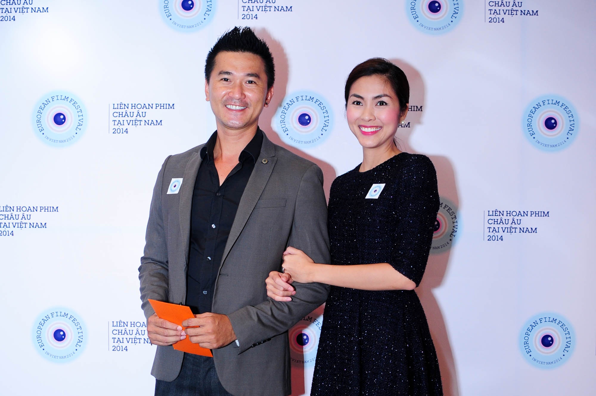 | Bình Minh đưa bà xã Anh Thơ tới dự lễ khai mạc LHP cùng mình. |