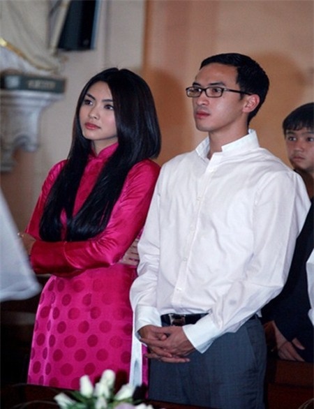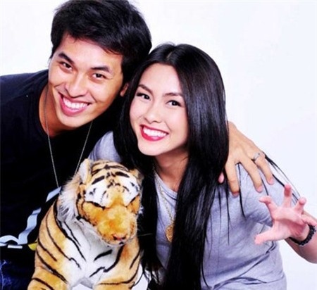 | Hà Tăng hạnh phúc cạnh chồng. |
