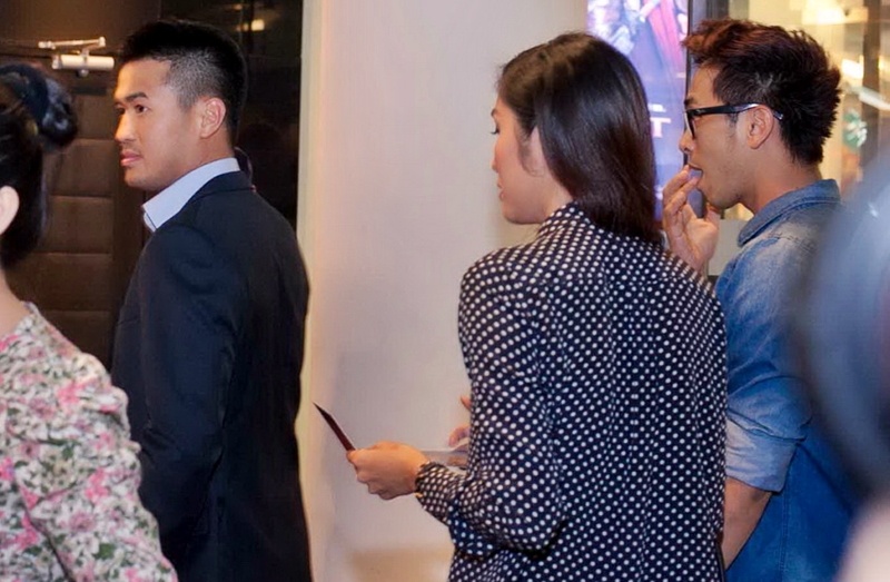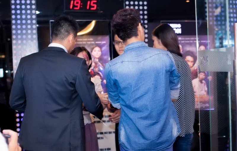 Nữ diễn viên "Mỹ nhân kế" xuất hiện giản dị trong buổi công chiếu phim hôm qua cùng cậu em chồng Phillips và người bạn thân.