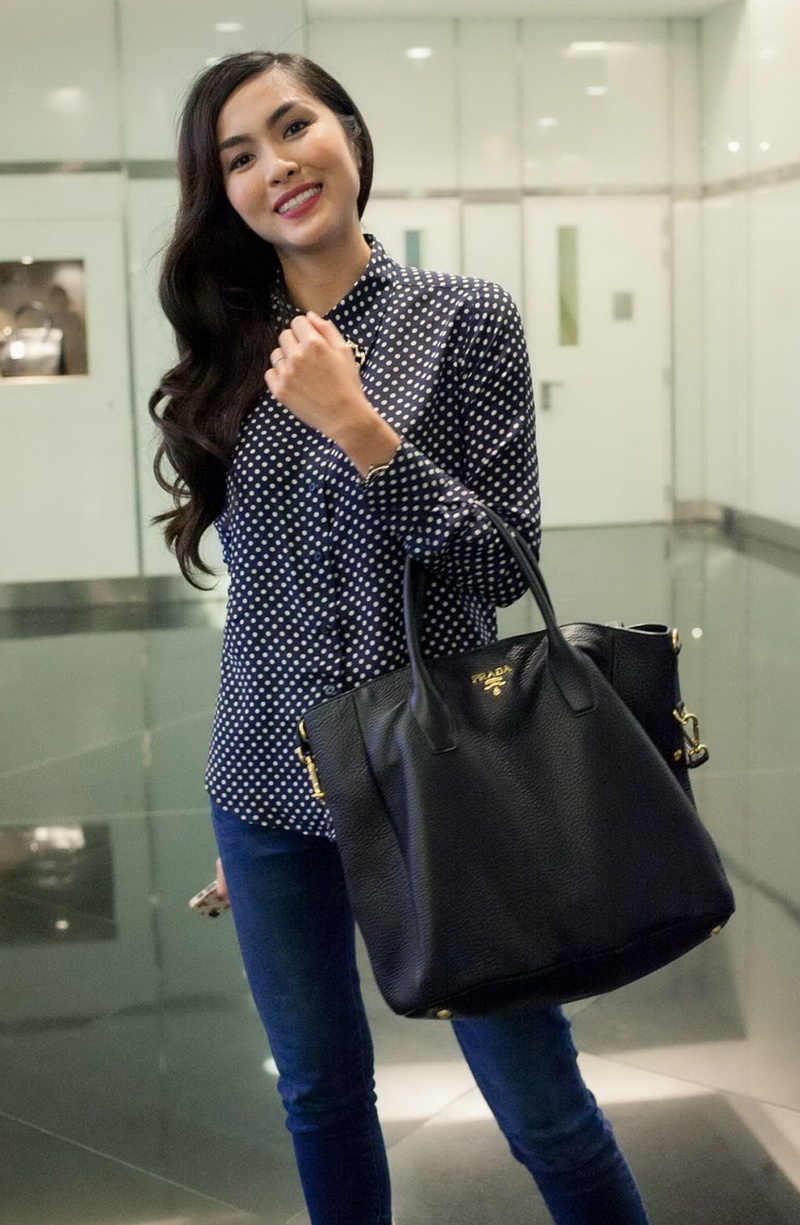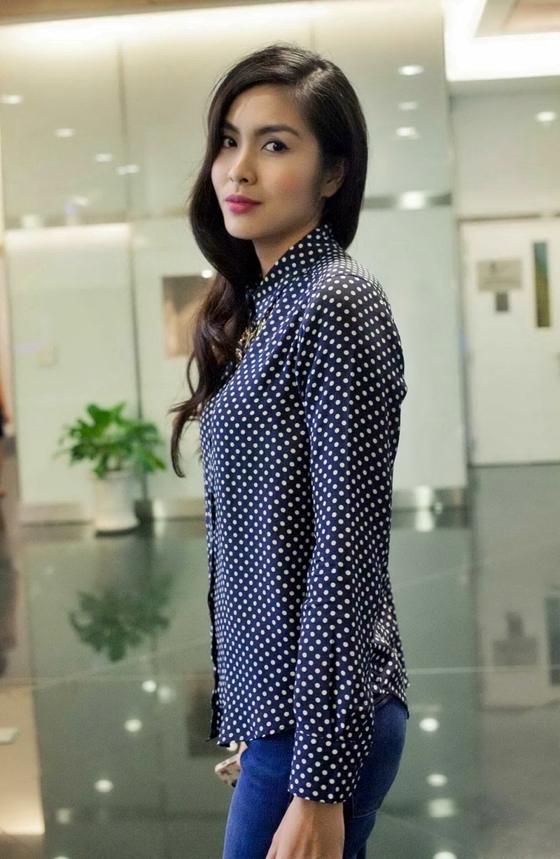 Không ăn mặc quá cầu kỳ để tạo sự chú ý, Hà Tăng chọn cho mình trang phục rất giản dị là áo sơ mi và quần jeans, gương mặt cũng trang điểm rất nhẹ.