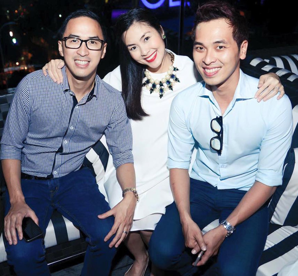 | Hà Tăng xuất hiện bên cạnh chồng và bạn thân - stylist Quang Tuyến. |