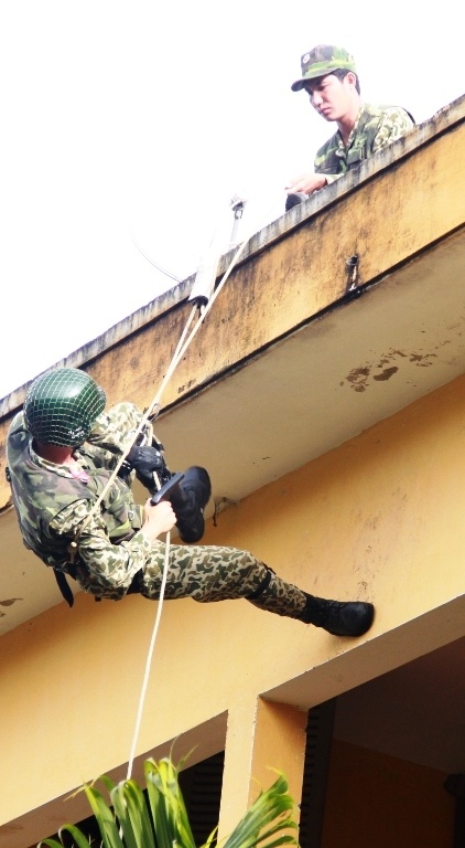 | Tình huống huấn luyện, diễn tập được Đội 10 - đội chống khủng bố (Lữ đoàn Đặc công 198 thực hiện. Các phương án tác chiến, tiếp cận mục tiêu thực hiện bài bản, điêu luyện với chiến thuật phục kích nhanh, đánh hiểm, phối hợp tình huống đột kích từ ngoài đánh vào, trên đánh xuống, tạo hiệu quả cao. Hình ảnh tổ đặc công phục kích, xác định mục tiêu. |
