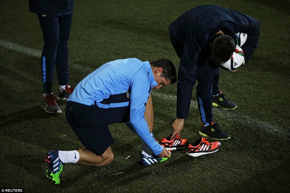Sau buổi tập chạy, Torres thay giày để tập với bóng nhằm lấy lại cảm giác.