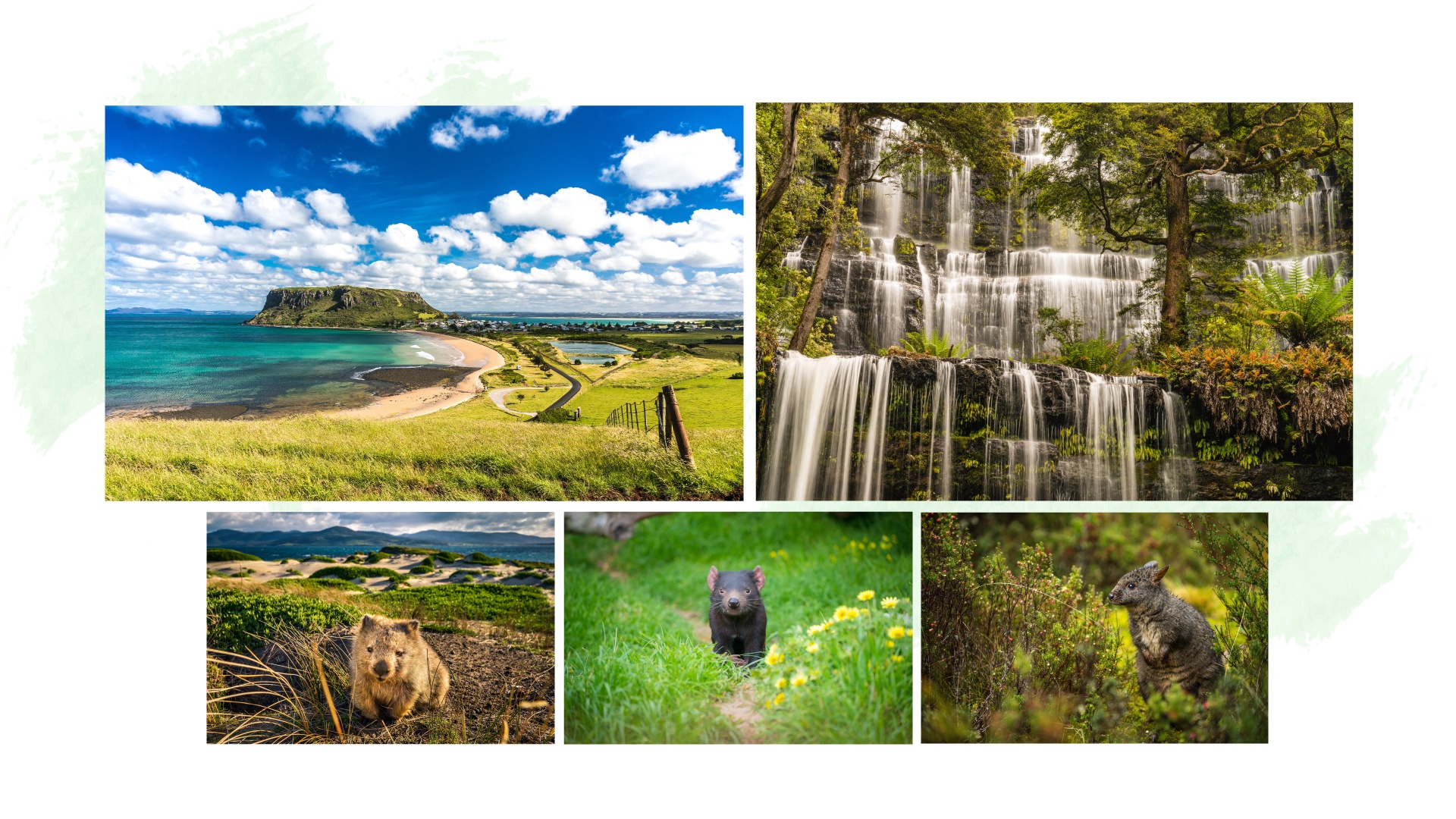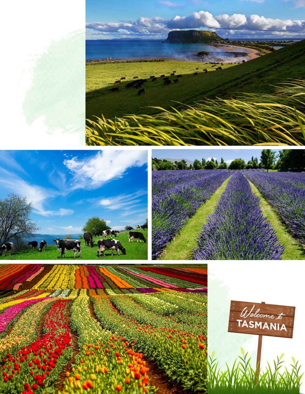 Được bao bọc bởi Thái Bình Dương và Ấn Độ Dương, Tasmania có hơn 1/3 diện tích là công viên quốc gia và khu bảo tồn di sản thế giới. Địa hình chủ yếu là núi non, rừng ôn đới, thung lũng, bình nguyên, xen lẫn những thị trấn xinh xắn và bãi biển trong xanh như ngọc.