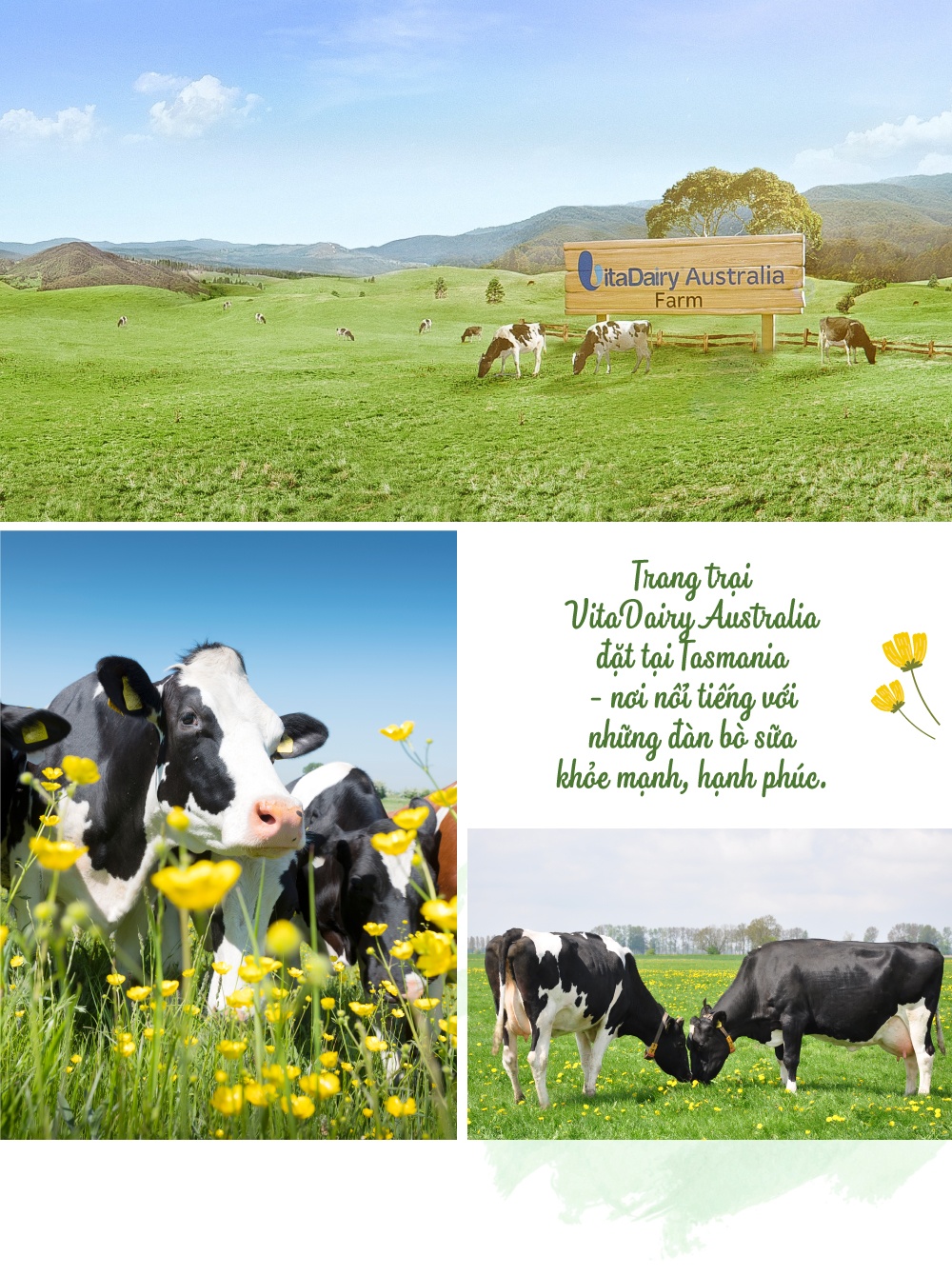 Chọn “thiên đường” Tasmania làm nơi đặt trang trại, VitaDairy mong muốn mang đến những giọt sữa sạch, chứa đựng tinh tuý từ không khí, đất, nước nguyên bản cho người Việt.