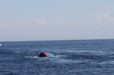 | Chiếc tàu cá vẫn chưa vào được đất liền. |