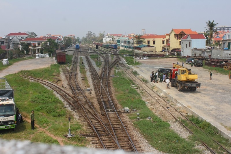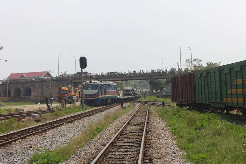 | Đúng 12h10 ngày 10/10, đoàn tàu hàng đặc biệt từ từ tiến vào ga Đồng Hới. |