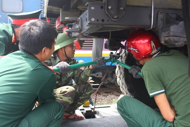 | Trước khi tàu hàng đặc biệt chở đoàn xe nghi lễ tới, lực lượng quân đội đã được triển khai để chuẩn bị đón tàu. |
