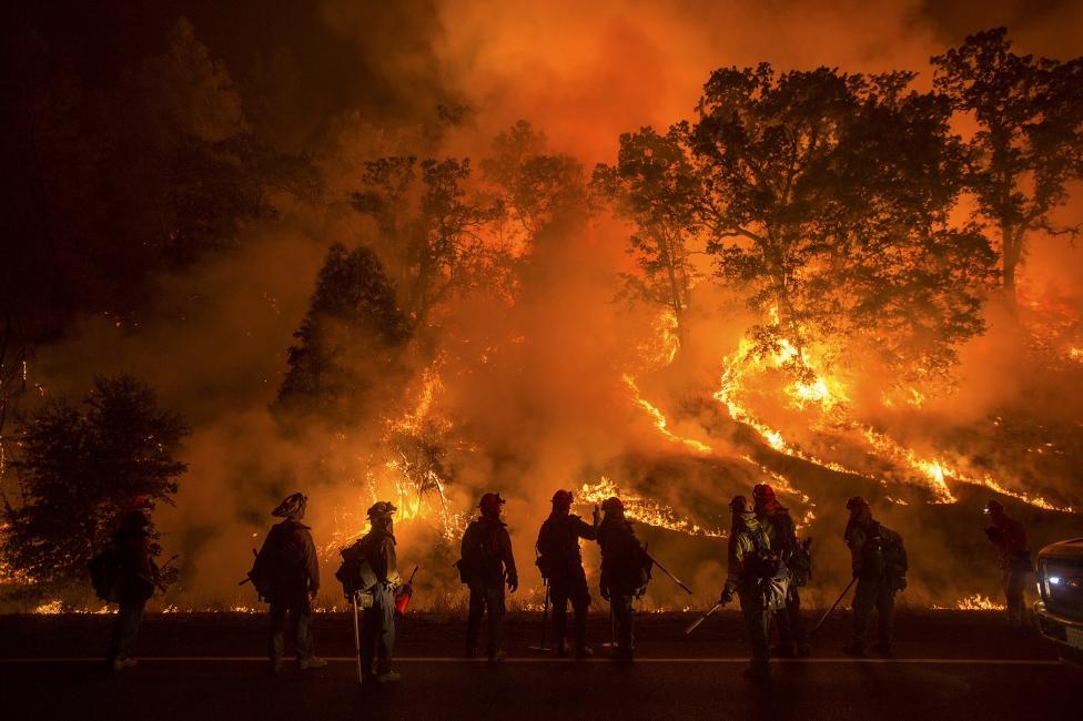 Cháy rừng nghiêm trọng ở Lower Lake, California, Mỹ, hôm 13/9. Lực lượng cứu hỏa phải làm việc vô cùng vất vả nhằm ngăn chặn đám cháy lan rộng nhưng không thành. |