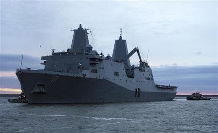 Reuters dẫn lời các quan chức giấu tên cho hay tàu đổ bộ USS San Antonio đang hoạt động gần 5 khu trục hạm tên lửa của Mỹ. Tuy nhiên, họ nhấn mạnh rằng nó tới Địa Trung Hải vì một lý do khác và Lầu Năm Góc không có ý định đưa lính thủy đánh bộ lên đất liền nếu Mỹ quyết định tấn công Syria.