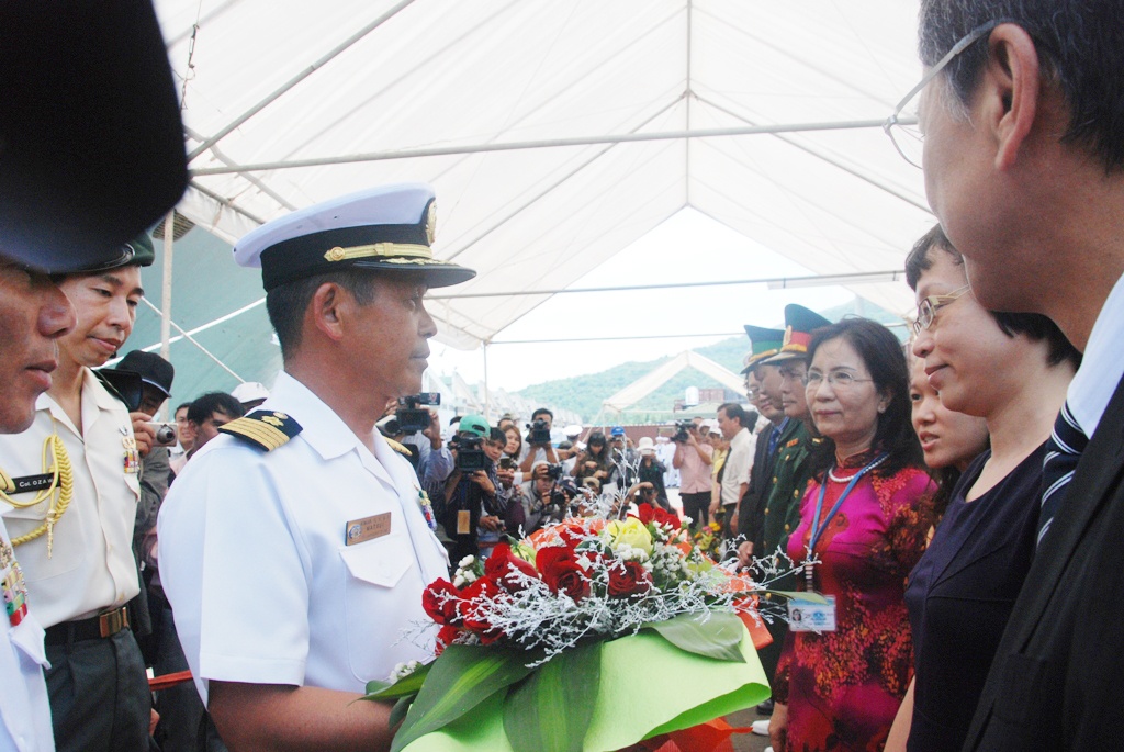 8h sáng 6/6, tàu vận tải đổ bộ JDS Kunisaki của Lực lượng Phòng vệ biển Nhật Bản chở hàng trăm sĩ quan cập cảng Đà Nẵng để tham gia hoạt động "Đối tác Thái Bình Dương 2014".