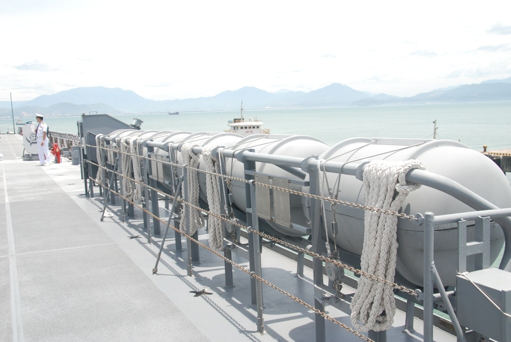 Tàu được trang bị nhiều vũ khí hiện đại. Trong ảnh là súng máy bắn hơn 3.000 phát đạn trong 1 phút và tiêu diệt mục tiêu ở nhiều khoảng cách khác nhau.