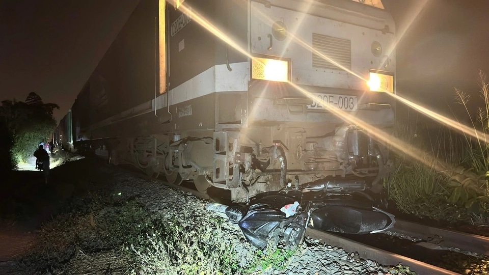 Sau va chạm, người và xe máy bị kéo lê trước đầu tàu hỏa một đoạn dài. Tàu hỏa đã dừng khẩn cấp để xử lý vụ việc.