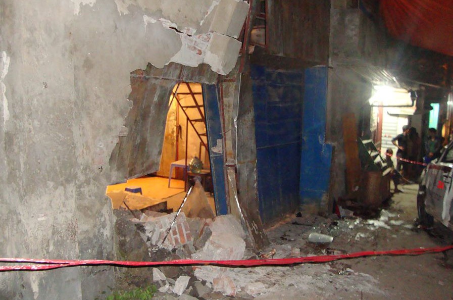 | Nhà dân bị thủng do xe bị tàu húc văng vào. |