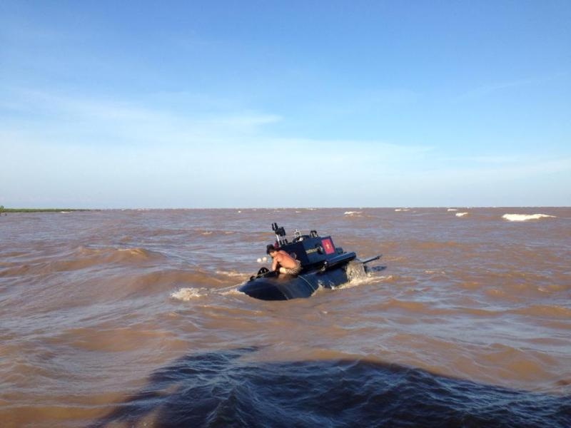 | Trời khá gió và nước chảy mạnh, con tàu vẫn băng băng hướng về phao số 0. Trước khi đưa ra biển thử nghiệm, tàu đã trải qua rất nhiều công đoạn củng cố kỹ thuật vận hành và đánh giá các trường hợp có thể xảy ra. |