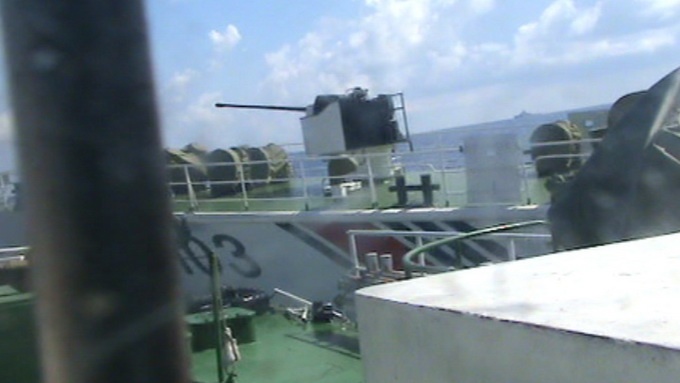 | Khẩu pháo của tàu Hải cảnh 44103 Trung Quốc luôn ở tình trạng tháo bạt. Nguồn: Cảnh sát biển VN. |