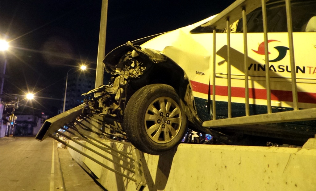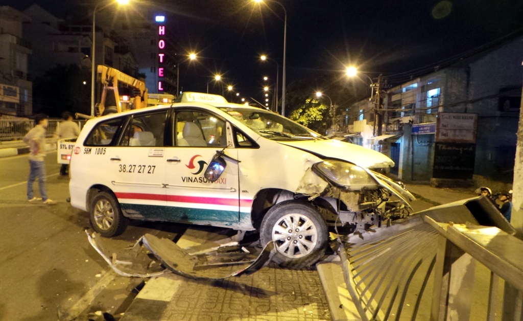 Taxi liên tiếp tông 3 người, suýt rơi xuống cầu Chữ Y