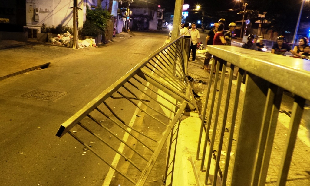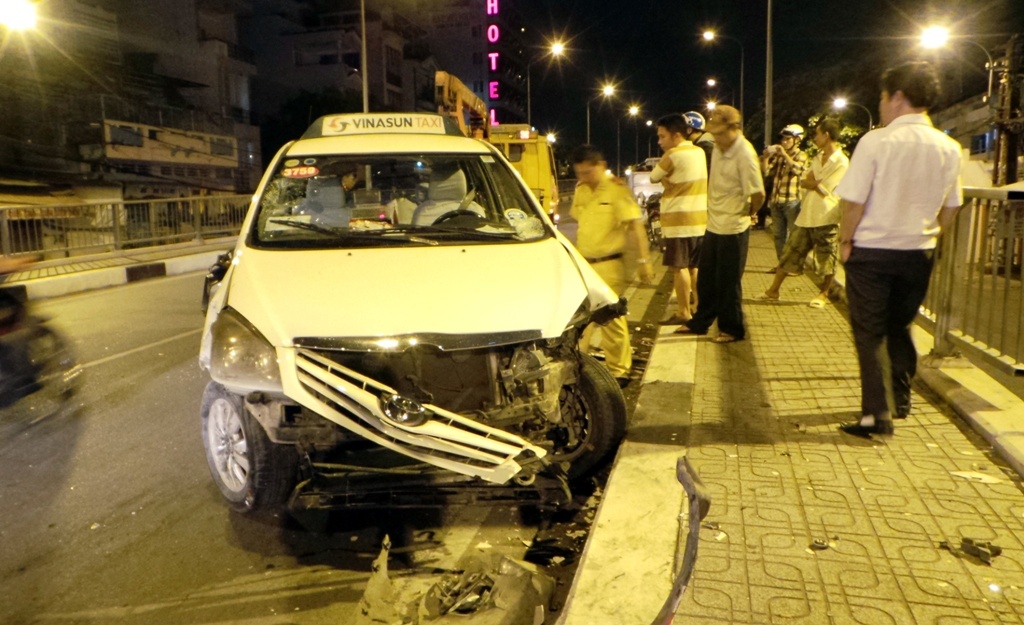 | Lực lượng dân phòng thuộc phường 1 quận 5 nhanh đóng gần chân cầu có mặt bảo vệ hiện trường, đưa người phụ nữ bị thương đi bệnh viện. Tài xế taxi may mắn không bị thương đã nhanh chóng đưa hai người đàn ông đi cấp cứu ở bệnh viện Nguyễn Tri Phương. |