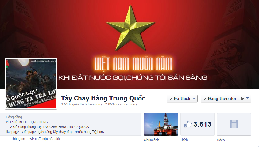 Hàng loạt fanpage đã được lập ra để bàn luận biện pháp tẩy chay hàng Trung Quốc, cộng đồng mạng kêu gọi người Việt Nam ưu tiên dùng hàng Việt Nam rầm rộ trên nhiều trang mạng xã hội. Chia sẻ trên trang cá nhân, một người tiêu dùng Việt Nam cho rằng: “Trước giờ khi mua một món đồ nếu có 2 xuất xứ thì không bao giờ mình chọn hàng China. Nhưng thật sự có những thứ mình cần mà chỉ có hàng China nên đành bấm bụng mua. Qua xứ Mỹ lật cái nhãn mác cũng toàn thấy xuất xứ từ China mà rầu thúi ruột. Có cách nào tẩy chay hàng hóa made in China không?”.