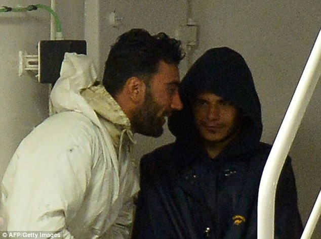 Mohammed Ali Malek, 27 tuổi, mang quốc tịch Tunisia và đồng phạm Mahmud Bikhit, 25 tuổi, người Syria bị buộc tội ngộ sát nhiều người sau vụ chìm tàu làm khoảng 900 người nhập cư thiệt mạng. Ảnh: AFP |