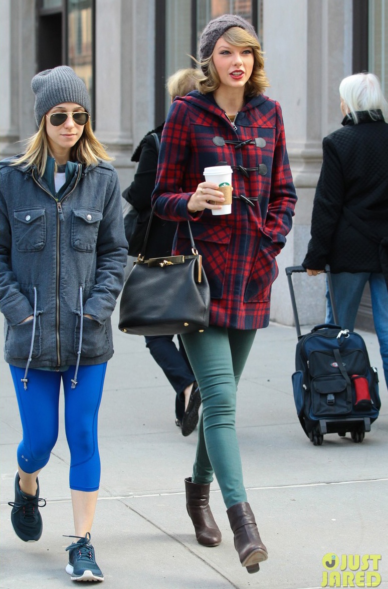| Taylor Swift (áo đỏ) ở New York hồi cuối tuần trước. |