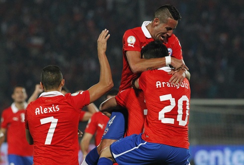 Chile: Bravo; Mena, Gonzalez, Isla, Medel; Vidal, Aranguiz, Pizarro, Diaz; Alexis Sanchez, Vargas.