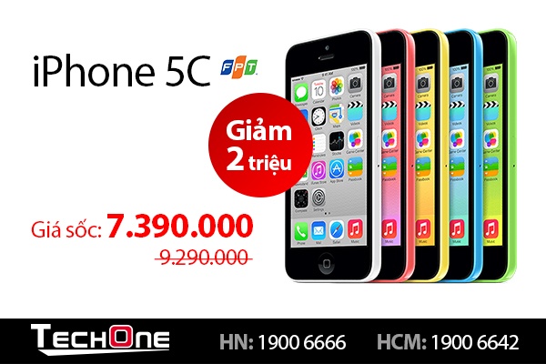 - iPhone 5C 16GB chính hãng FPT mới 100% đã bao gồm VAT: 7,39 triệu ( Giá cũ: 9,29 triệu)