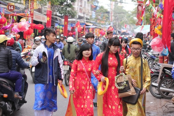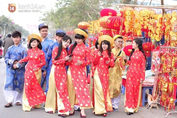 | Những bạn trẻ mặc áo dài truyền thống để chụp ảnh. |