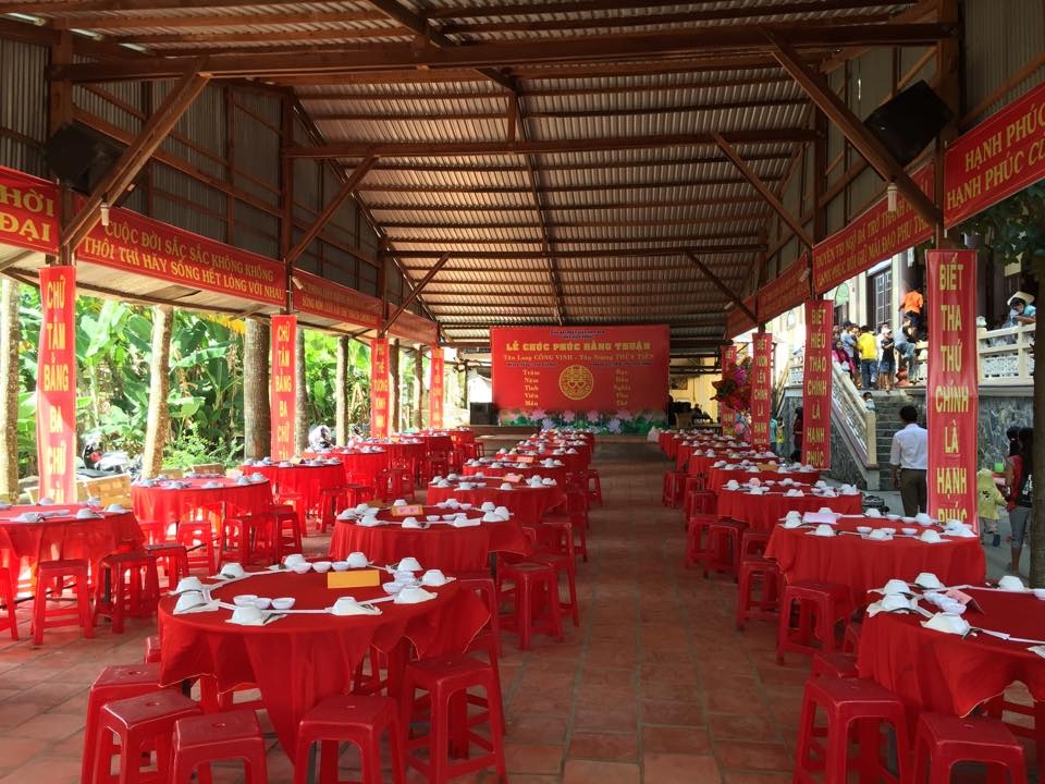 | Nơi đón khách tới thưởng thức cỗ chay được chuẩn bị chu đáo. |
