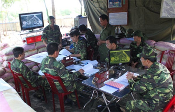 | Sở chỉ huy Lữ đoàn 680 trong diễn tập thực binh. |