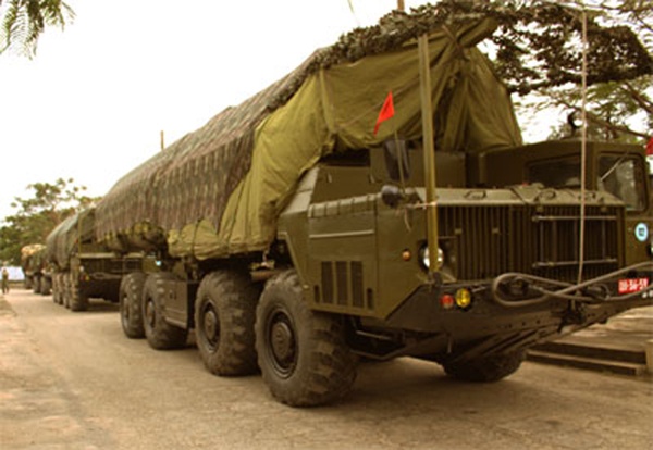 | Đội hình xe chở tên lửa chuẩn bị xuất phát. |