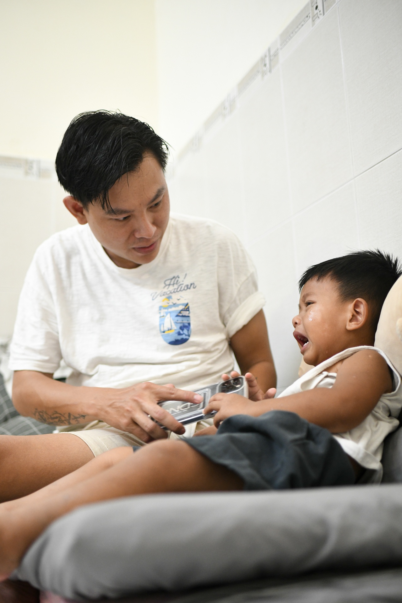 | Lần đầu làm ba, chúng tôi có những bỡ ngỡ nhất định trong việc chăm sóc một đứa trẻ. Tuy nhiên, cả hai nghĩ đến con mà cố gắng hoàn thiện từng ngày, mong sao con lớn lên khỏe mạnh, hạnh phúc. Trong hai người ba, tôi đảm nhận công việc như một người "mẹ", từ khâu thay tã, cho con ăn, ru con ngủ đến tắm rửa cho Cọp. |