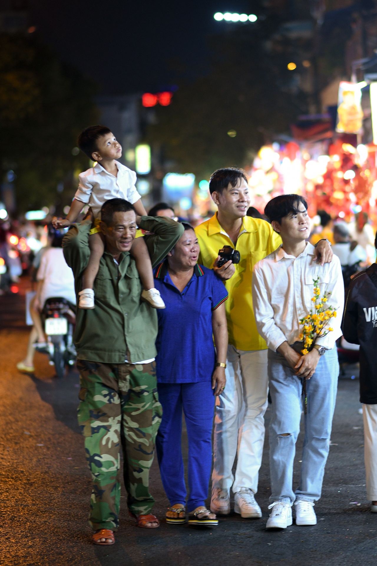 | Không hẹn mà gặp gia đình ông bà nội lớn, chúng tôi tay bắt mặt mừng rồi cùng nhau chụp vài bức hình. Sau đó, chúng tôi tạm biệt ông bà rồi trở về nhà để trang trí nhà cửa với những gì mua được, đồng thời chuẩn bị livestream bán hàng buổi tối. |