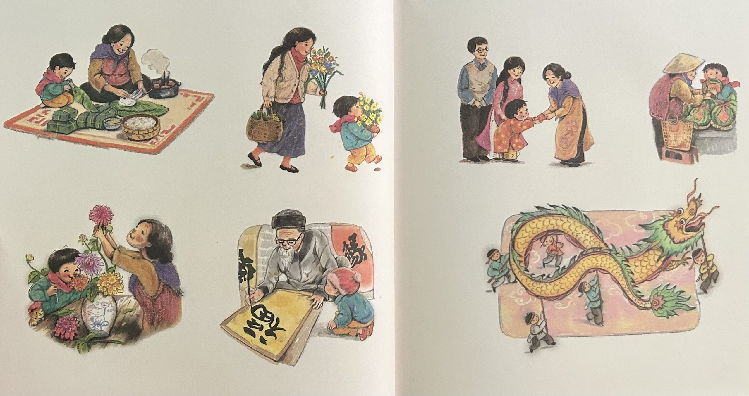 Vài năm trở lại đây, sách Tết đã trở thành thức quà tinh thần quen thuộc dành tặng độc giả nhỏ tuổi mỗi độ xuân về. Đa dạng về tiếp cận kể chuyện, phong cách minh họa song nhìn chung, sách Tết cho thiếu nhi thường truyền tải hình ảnh ngày Tết sum vầy, ấm cúng trong không gian đậm đà hương vị của phong tục tập quán quê hương Việt.