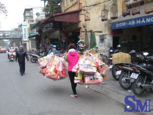 Theo một người bán hàng trên phố Hàng Mã: Cận ngày rồi nhưng hàng vẫn còn ế nhiều, khách đến mua cũng ít hơn hẳn. Năm nay khách chủ yếu mua bộ đồ cũng cỡ nhỏ và cỡ trung có giá từ 50.000- 120.000 đồng/bộ và tiền vàng. Có mua thêm thì là ngựa giấy hay cá chép…những mặt hàng khác như nhà lầu, xe hơi, tivi thì gần như không bán được.