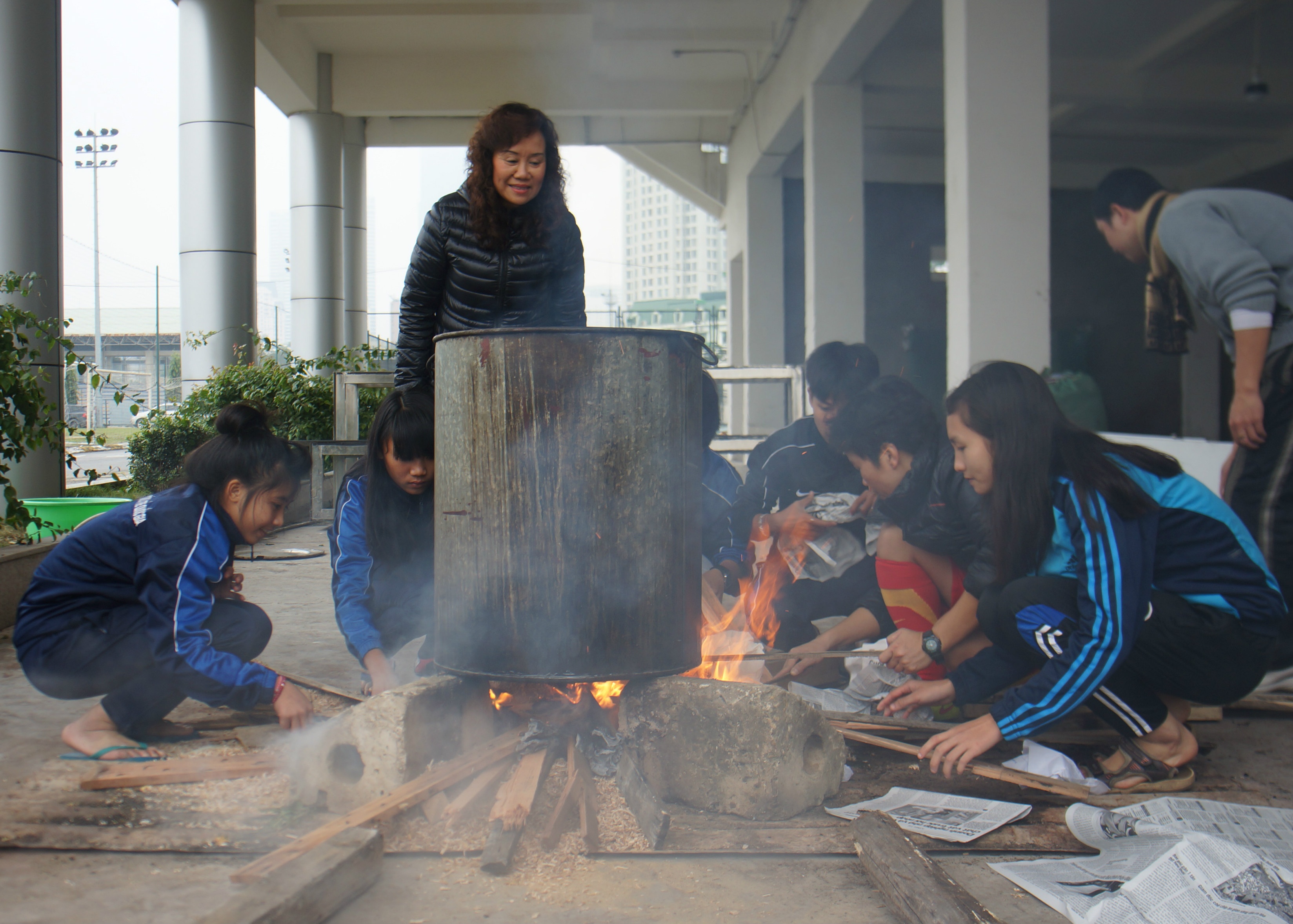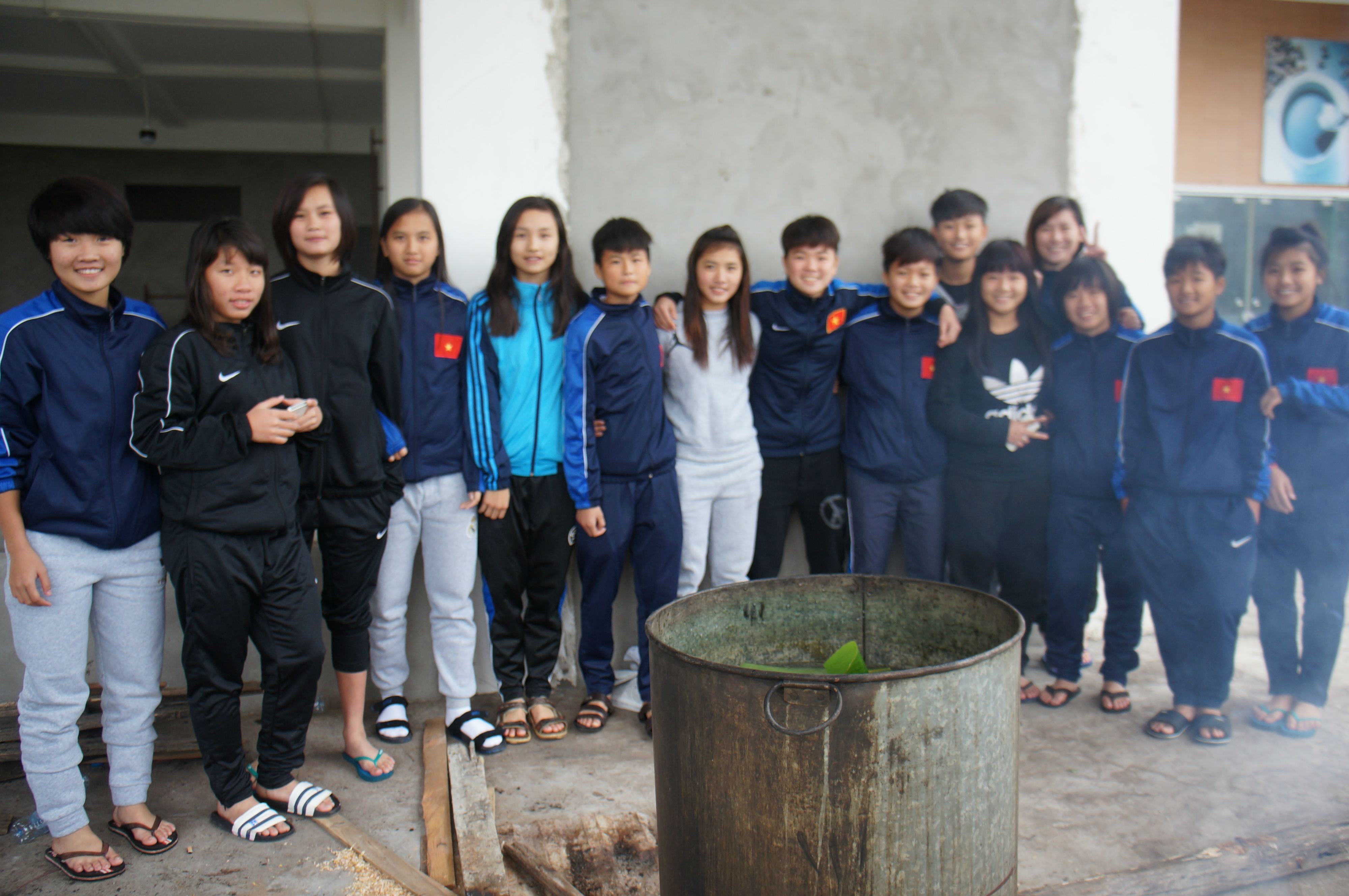 Đến chiều tối nồi bánh chưng đã được nhóm lửa hồng. Cả đội quây quần bên nồi bánh chưng. Lãnh đạo Trung tâm cũng hiểu được tâm lý các em nên chuẩn bị cả mấy rổ khoai, ngô các loại để các nữ cầu thủ nướng khi luộc bánh chưng. Ai cũng náo nức, đúng là vui như Tết, người tiếp nước, người tiếp lửa cho nồi bánh.