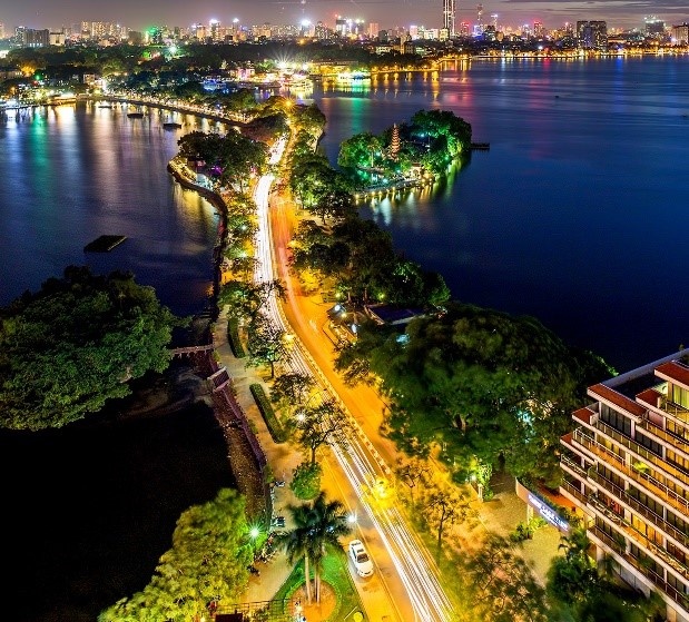 | Khung cảnh lãng mạn nhìn từ Pan Pacific Hà Nội. |