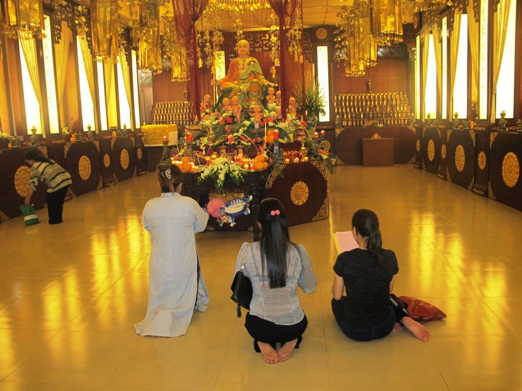 | Rất nhiều những ông bố bà mẹ đang quỳ trước tượng Phật thờ con mình. |