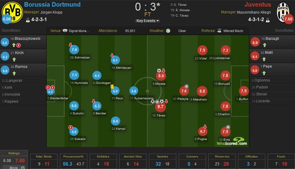 Thông số trận đấu và đội hình ra sân của Dortmund và Juve