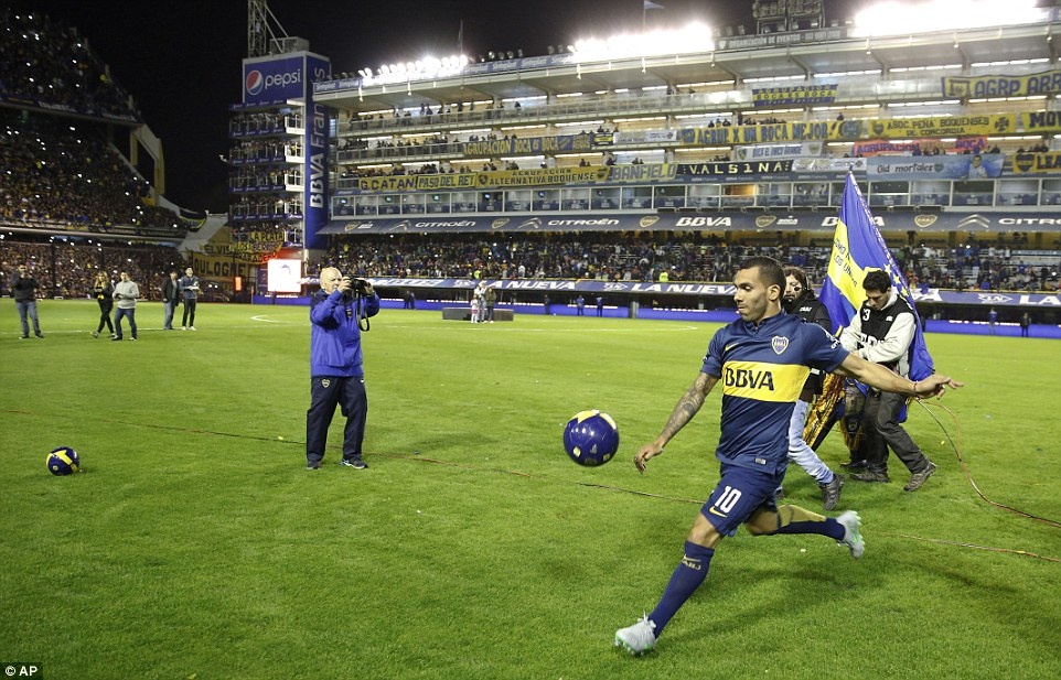 | Khoảng 40.000 CĐV có mặt trên sân La Bombonera chào màn ra mắt của Tevez. Chia sẻ về điều này, chân sút 31 tuổi cho biết: "Đây là một đêm đầy cảm xúc và hạnh phúc. Tôi chưa từng trải qua đêm nào tuyệt vời như hôm nay". |