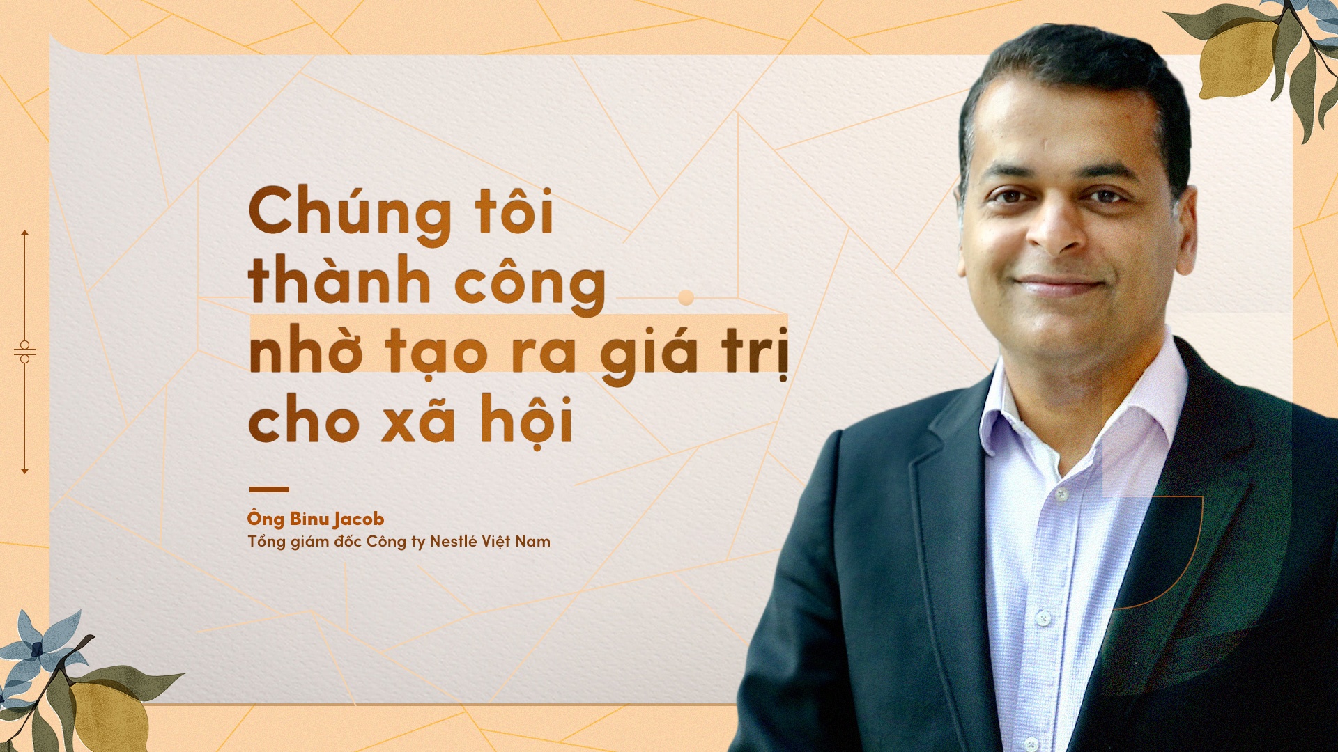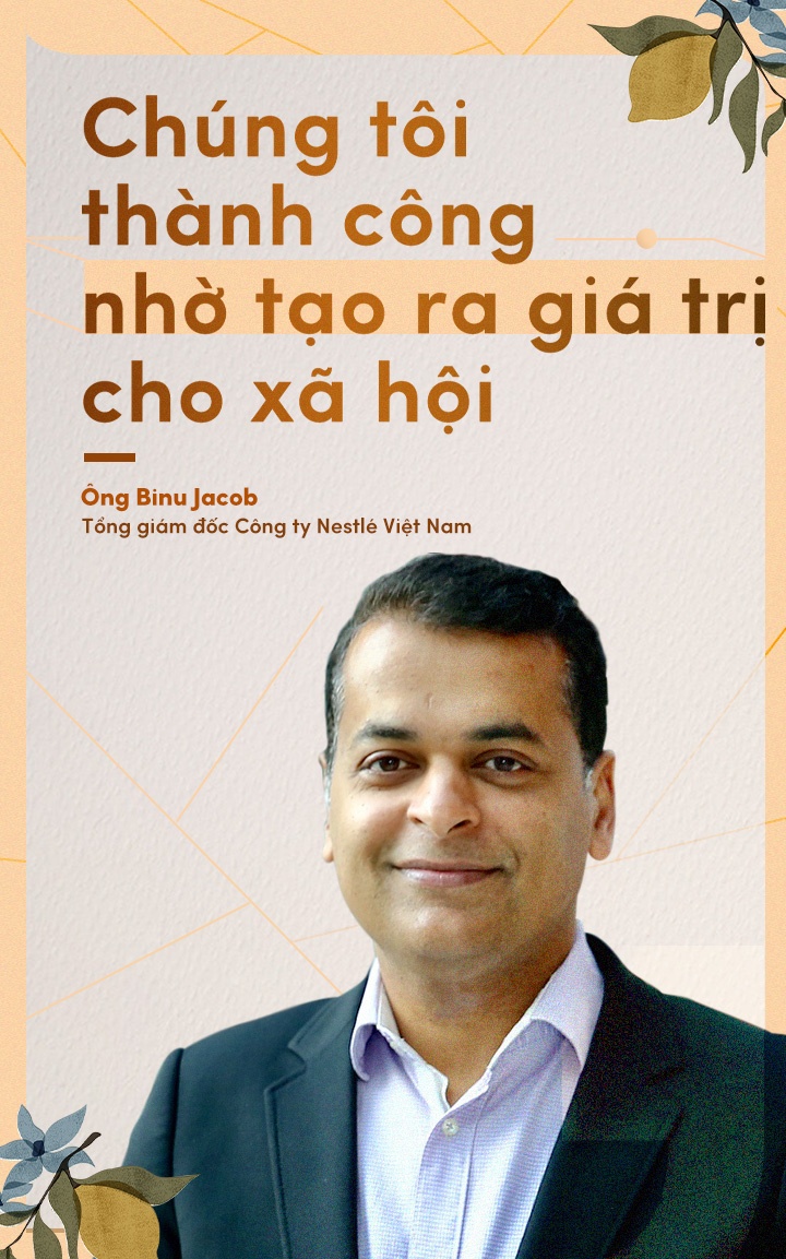“Tại Nestlé, chúng tôi tin rằng thành công dài hạn chỉ được tạo ra bằng cách mang lại giá trị cho cả cổ đông và xã hội. Các hoạt động, sản phẩm của chúng tôi tạo sự khác biệt tích cực, góp phần vào thành công liên tục của tập đoàn. Động lực phát triển của chúng tôi đến từ sứ mệnh nâng cao chất lượng cuộc sống và đóng góp cho tương lai khỏe mạnh hơn”, ông Binu Jacob cho biết.