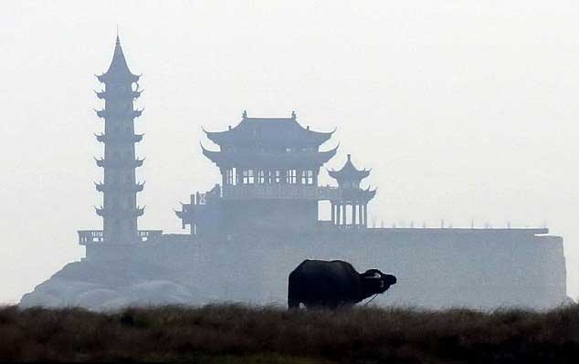 Thả trâu, đi xe đạp dưới lòng hồ nước lớn nhất Trung Quốc