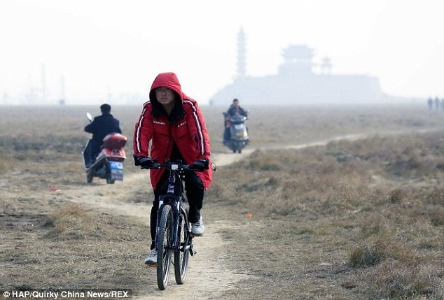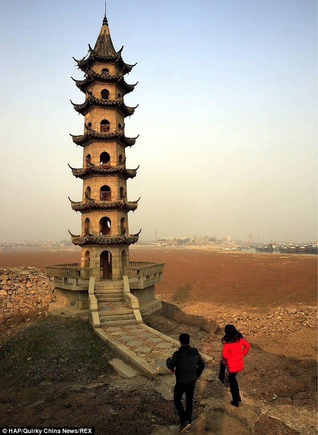Tuy nhiên, hồ Phàn Dương đang cạn trơ đáy do hạn hán và sự thiếu hụt nước từ thượng nguồn - tác động tiêu cực từ công trình đập Tam Hiệp. Thay vì du ngoạn trên mặt nước, du khách sẽ phải đi bộ dưới đáy hồ hoặc đi xe đạp, xe máy để tới hòn đảo ở giữa lòng hồ. Ảnh: REX.