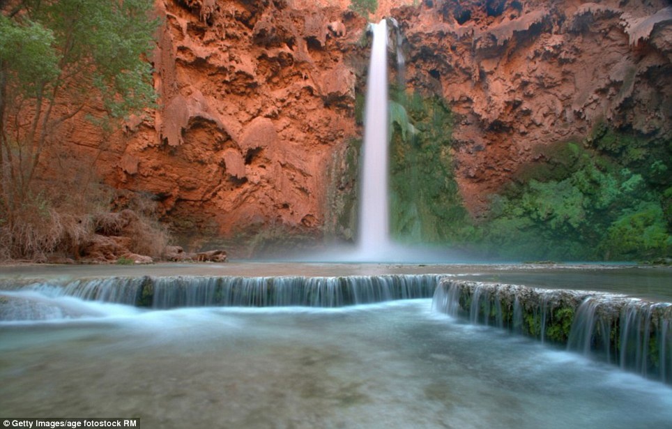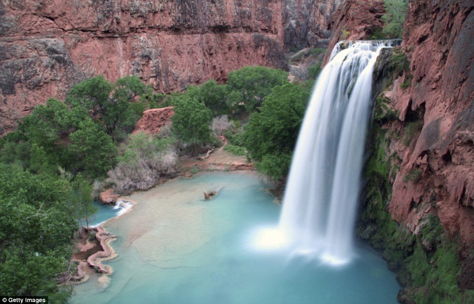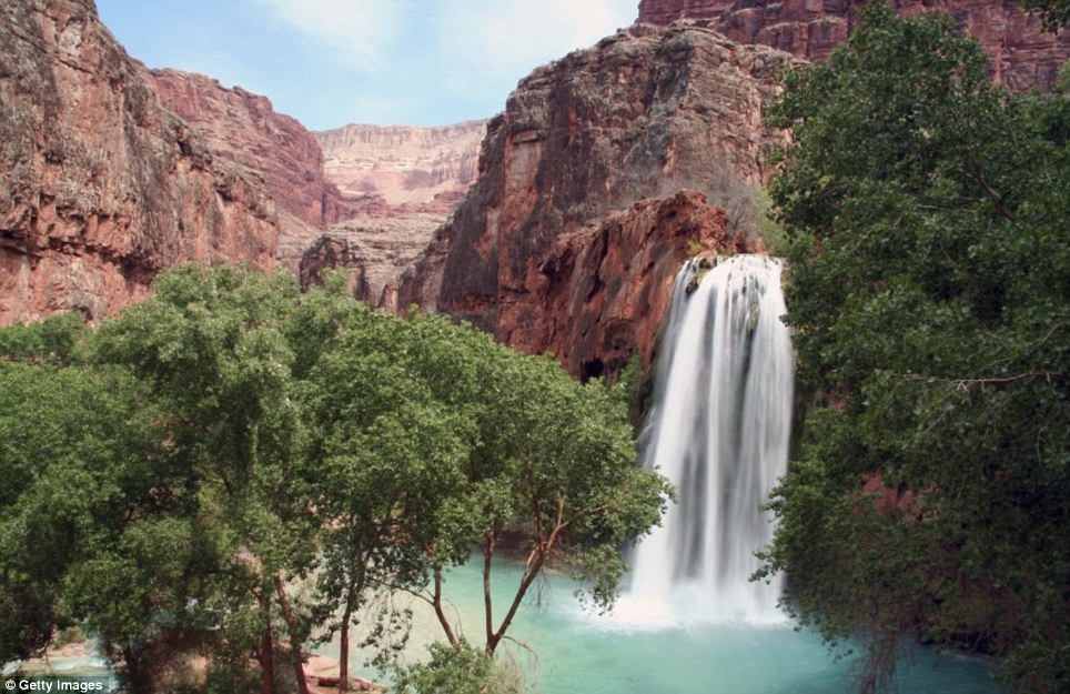 Thác nước Mooney. Đây là thác nước cao nhất nằm trong bốn thác nước chính ở Grand Canyon. Dưới chân thác là một hồ nước rộng lớn, cho du khách thỏa sức bơi lội. |